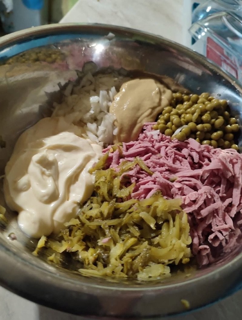 V bývalém Československu se jednalo a i v současnosti se jedná o druh salátu, vyráběného z pařížského či jiného měkkého salámu, sladkokyselých sterilovaných okurek, cibule, sterilovaného hrášku, majonézy, hořčice, soli, mletého pepře, worcesteru, octa a cukru.
