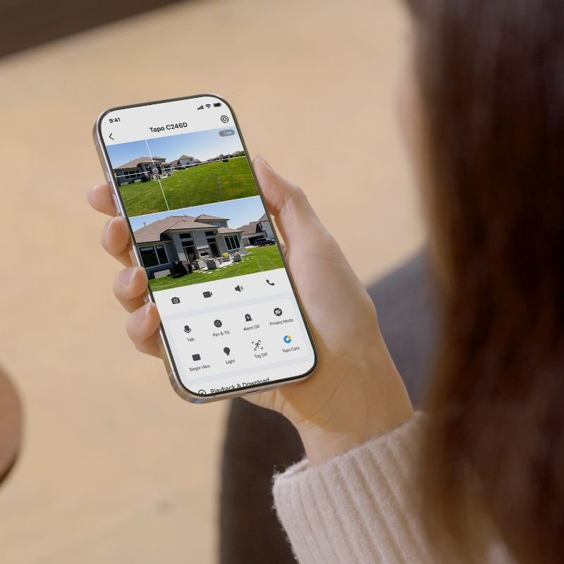 Tapo C246D používá bezplatnou pokročilou AI detekci, která rozpoznává osoby, pohyb, domácí mazlíčky, vozidla a specifické zvuky jako pláč dítěte, štěkání psa, mňoukání kočky nebo rozbití skla. Funkce zón aktivity umožňuje omezit upozornění jen na důležité oblasti. Synchronizované chytré sledování zajistí, že když širokoúhlý objektiv zachytí pohyb, teleobjektiv se automaticky přepne a sleduje objekt v reálném čase.