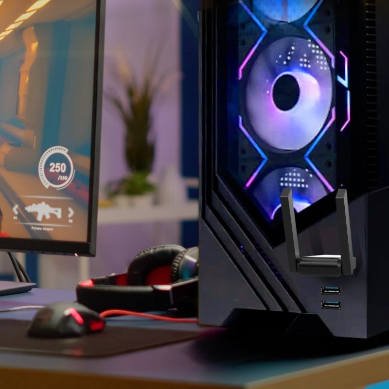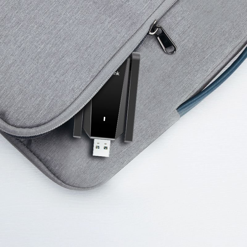 Dvě externí nastavitelné antény s vysokým ziskem zajišťují silný a stabilní signál i na větší vzdálenosti a díky technologii Beamforming adaptér směruje Wi‑Fi signál přesně tam, kde je potřeba. Adaptér je připojen prostřednictvím odnímatelného dokovacího stojanu s USB 3.0 kabelem o délce 1,2 m, což umožňuje optimální umístění antén pro nejlepší signál. Tento praktický design zajišťuje flexibilní instalaci a pomáhá dosáhnout maximálního výkonu bez ohledu na umístění počítače.