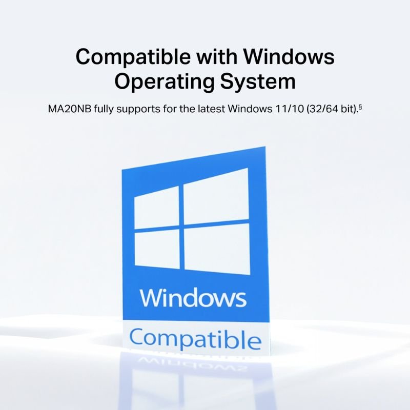 MA20NB je navržen pro rychlé a bezproblémové použití. Adaptér funguje na principu Plug and Play, takže jej stačí zapojit do USB portu a během několika sekund je připraven k použití bez nutnosti instalace CD nebo ručního nastavování ovladačů. Tento přístup umožňuje i méně zkušeným uživatelům snadno rozšířit možnosti svého počítače.
