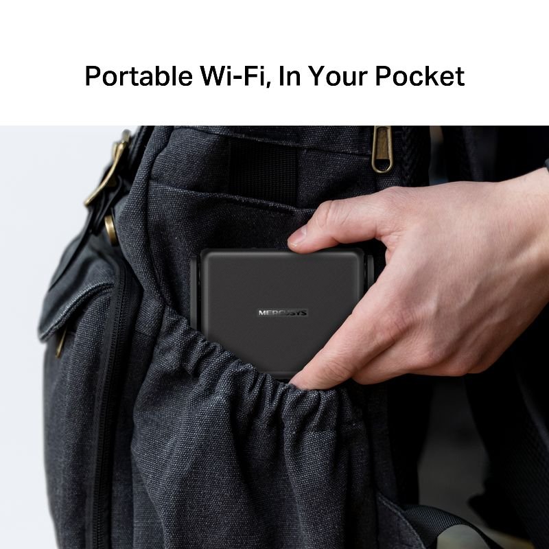 Zařízení má kompaktní rozměry přibližně 108 × 86,8 × 34 mm a díky sklápěcím anténám se snadno vejde do batohu nebo tašky. Konstrukce je navržena pro jednoduché přenášení, takže router může sloužit jako mobilní řešení připojení při cestování, práci v terénu nebo ve vzdálených lokalitách bez pevné internetové infrastruktury.